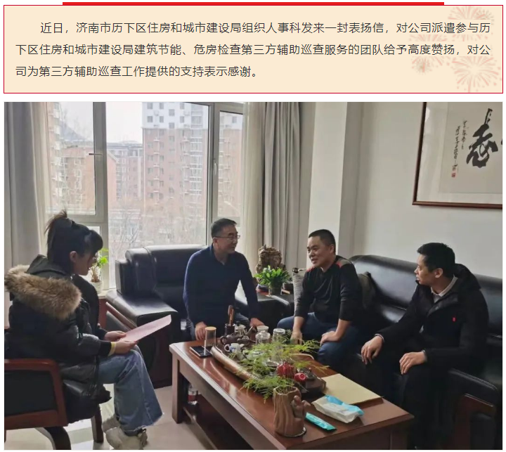 點(diǎn)贊!公司第三方輔助巡查服務(wù)團(tuán)隊(duì)獲歷下區(qū)住房和城市建設(shè)局組織人事科來信表揚(yáng)